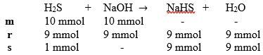 Sebanyak 10 mL H2S 1 M dititrasi dengan 30 mL NaOH 0,3 M. Setelah akhir reaksi pH larutan diukur. pH larutan sebelum dan sesudah titrasi adalah …. (Ka1 H2S = 9 x 10-8 ; Ka2 H2S = 1,2 x 10-13 ; log 3 = 0,47)