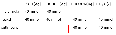 Sebanyak 200 mL KOH 0,2 M direaksikan dengan 200 mL HCOOH 0,2 M menurut reaksi: