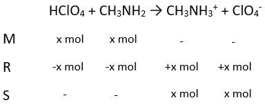 Sebanyak 50 mL larutan metilamin tepat bereaksi dengan 50 mL larutan asam hipoklorit (HClO) sesuai reaksi berikut.