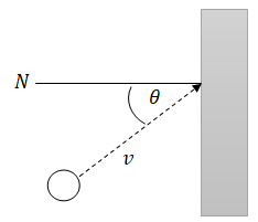 Seberkas molekul-molekul hidrogen diarahkan ke sebuah dinding dengan membentuk sudut terhadap garis normal bidang dinding. Tiap molekul-molekul di dalam berkas ini memiliki kelajuan 1,0 km/s dan massa g. Berkas mengenai dinding pada bidang permukaan seluas sebanyak molekul tiap detiknya. Tekanan yang diberikan berkas molekul-molekul hidrogen tersebut pada dinding adalah … (Asumsikan tumbukan yang terjadi antara berkas molekul-molekul hidrogen dengan dinding adalah lenting sempurna).