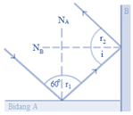 Seberkas sinar mengenai suatu bidang A dengan sudut datang 60˚. Kemudian dari bidang A dipantulkan menuju bidang B yang saling tegak lurus satu sama lain. Maka besar sudut r2 adalah …