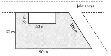 Sebidang tanah berbentuk trapesium siku-siku, di atasnya dibangun rumah dan sisanya kebun seperti sketsa berikut.