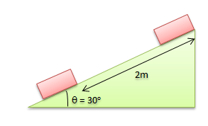 Sebuah balok bermassa 1,5 kg berada di atas bidang miring dikenai gaya dorong ke atas sejajar bidang miring sebesar 15 N. Anggap percepatan gravitasi (g) = 10 ms-2 dan gesekan antara balok dan bidang miring nol. Usaha total yang dilakukan pada balok adalah.…