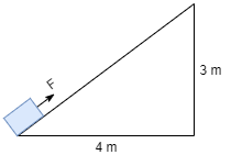 Sebuah balok bermassa 2 kg berada pada bidang miring yang licin. Apabila balok ditarik dengan gaya 40 N seperti pada gambar di bawah, berapa besar usaha untuk memindahkan balok sampai pada titik puncak bidang miring?