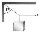 Sebuah balok bermassa 4 kg diikat seperti pada gambar di bawah. Tali yang bebas ditarik dengan gaya sebesar F. Agar sistem seimbang dengan keadaan F mendatar dan tali ke dinding membentuk sudut 37°, besar F adalah ... N.