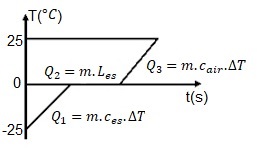 Sebuah balok es memiliki panjang 20 cm, lebar 10 cm dan tinggi 2,5 cm. Balok es tersebut dipanaskan dari suhu – 25 oC hingga berubah menjadi air bersuhu 25 oC. Jika massa jenis es adalah 0,92 gr/cm3, kalor jenis es 2,1 J/groC, kalor jenis air 4,2 J/groC dan kalor lebur es 334 J/gr, maka jumlah kalor yang diperlukan adalah ....