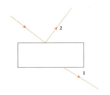 Sebuah balok kaca digunakan untuk menggeser linrasan sebuah berkas cahaya seperti ditunjukkan gambar di samping. Fenomena yang ditunjukkan oleh angka 1 dan 2 pada gambar adalah ....