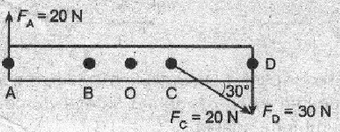 Sebuah batang bermassa 2 kg dikenai gaya seperti gambar berikut.