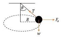 Sebuah batu dengan massa m diikatkan pada ujung tali yang panjangnya l. Kemudian tali diputar dengan laju sudut ω hingga lintasan batu berbentuk lingkaran pada bidang horizontal. Jika tali membentuk sudut θ terhadap arah vertikal, laju sudut batu sebesar ….