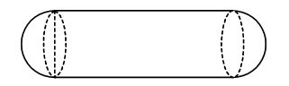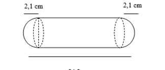 Sebuah benda berbentuk kapsul seperti gambar di bawah. Benda tersebut terdiri dari sebuah tabung dan dua belahan bola pada kedua ujungnya. Jari-jari belahan bola 2,1 cm dan panjang benda dari ujung ke ujung yang lain 24,2 cm. Hitunglah volume benda tersebut adalah ...