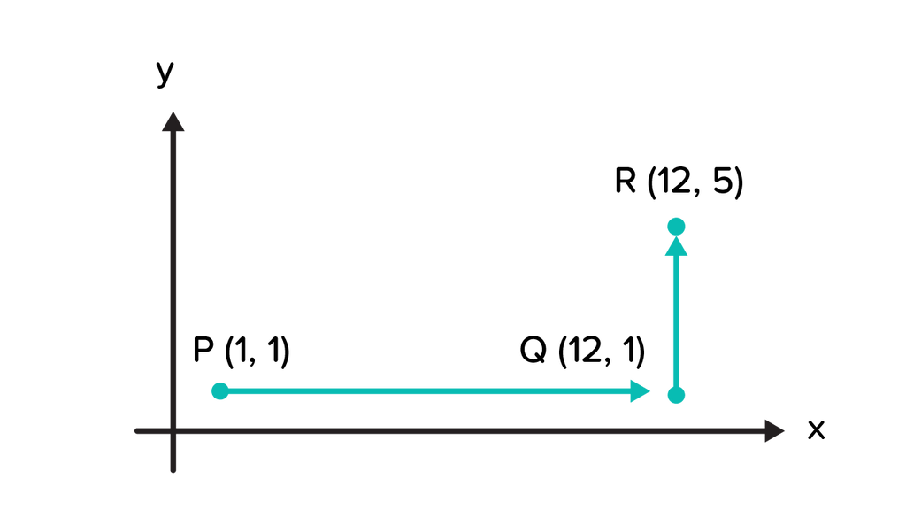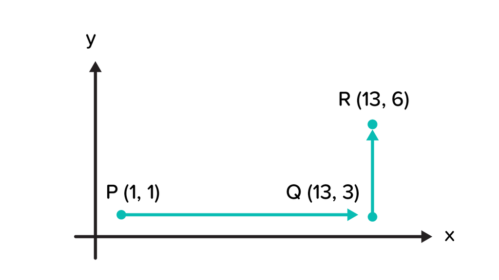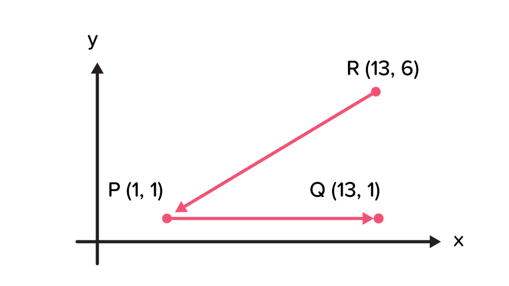 sebuah benda bergerak dari titik P ke Q dan berhenti di titik R, gambar yang menunjukkan benda berpindah sejauh 13 satuan adalah ....
