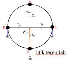 Sebuah benda bermassa 0,1 kg diikat dengan seutas tali yang panjangnya 1 m. Kemudian benda diputar dengan kelajuan tetap 2 m/s. jika percepatan gravitasi 10 m/s2, besar tegangan tali pada saat benda berada di titik terendah adalah ….