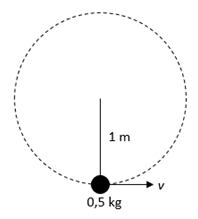 Sebuah benda bermassa 0,5 kg digantungkan dengan seutas tali yang panjangnya 1 m. Benda bergerak melingkar pada bidang vertikal seperti berikut.