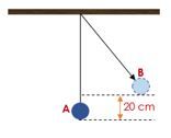 Sebuah benda dengan massa 1 kg digantung dengan benang (massa benang diabaikan) dan diayunkan hingga ketinggian 20 cm dari posisi A (lihat gambar di bawah). Bila g = 10 m/s², maka hitunglah kecepatan benda saat di posisi A!
