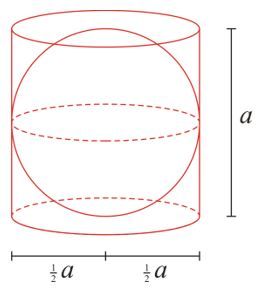 Sebuah bola berada tepat dalam tabung. Jika tinggi tabung adalah , maka perbandingan volume bola dan tabung adalah ....