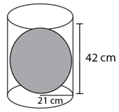 Sebuah bola dimasukkan ke dalam tabung tanpa tutup kemudian diisi dengan air hingga penuh. Jika diameter dan tinggi tabung sama dengan diameter bola yaitu 42 cm, maka volume air yang tertampung oleh wadah tersebut adalah .…