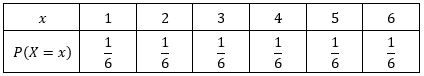 Sebuah dadu dilempar dalam keadaan setimbang, jika variabel acak X menyatakan mata dadu hasil pelemparan, maka adalah ....