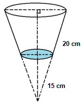 Sebuah ember berbentuk kerucut terpancung mempunyai diameter lingkaran atas dan diameter lingkaran bawah . Jika lebar ember , tentukan volume air yang dapat ditampung ember tersebut.