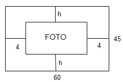 Sebuah foto diletakkan pada sehelai karton berukuran 60 x 45. Di sebelah kiri dan kanan foto itu masih terdapat karton selebar 4 cm, sedangkan sisa sebelah atas dan bawah foto memiliki lebar yang sama yaitu h. Jika foto dan karton sebangun. Maka lebar karton di sebelah atas dan bawah foto yang tidak tertutup adalah... cm