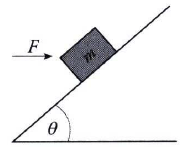 Sebuah gaya F bekerja horizontal pada benda yang berada pada bidang miring dengan sudut kemiringan seperti pada gambar berikut.