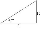 Sebuah jambu terjatuh di taman, tepat di depan tumbuhan kecil yang memiliki tinggi 10 cm, apabila sudut antara titik puncak tumbuhan ke buah jambu dengan arah mendatar adalah 45°, maka jarak antara buah jambu dengan tumbuhan tersebut adalah....
