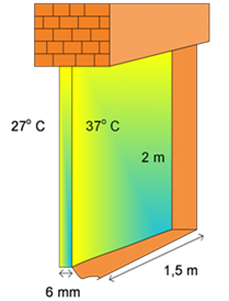 Sebuah jendela kaca suatu ruangan tingginya 2 m, lebarnya 1,5 m dan tebalnya 6 mm. Suhu di permukaan dalam dan permukaan luar kaca masing-masing 27°C dan 37°C.