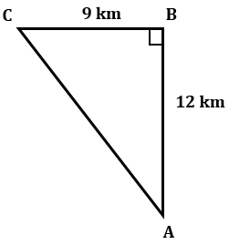 Sebuah kapal berlayar ke arah utara sejauh 12 km kemudian kapal tersebut berbelok ke arah barat dan berlayar sejauh 9 km. Jarak kapal dari titik awal keberangkatan ke titik akhir adalah?