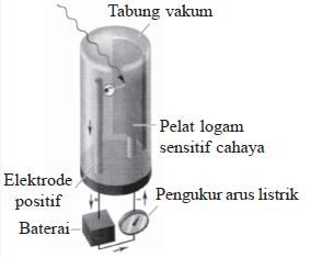 Seberkas cahaya ditembakkan pada permukaan pelat logam dengan intensitas cahaya yang sangat besar sehingga elektron dapat bergerak ketika ditumbuk oleh cahaya tersebut