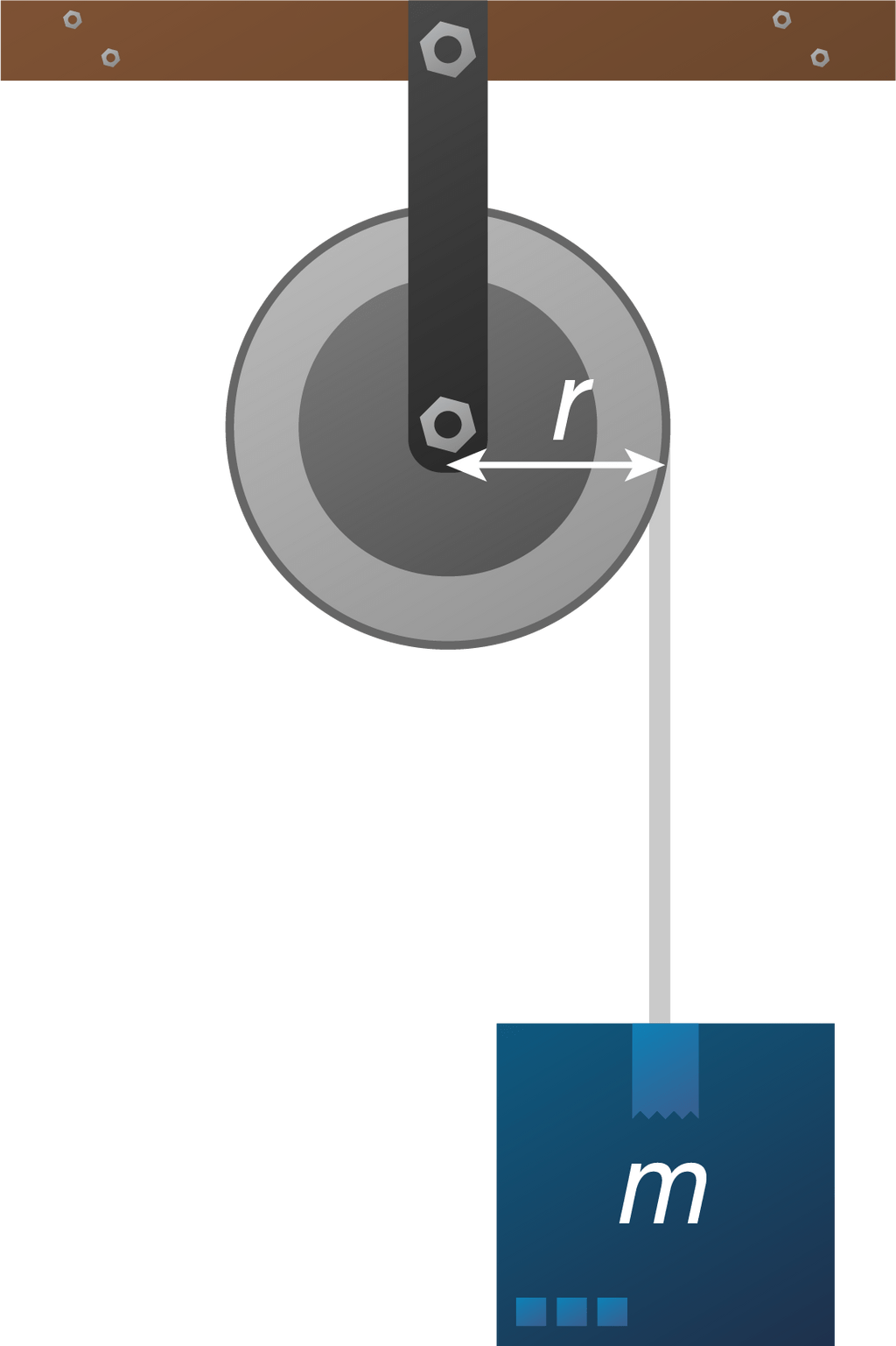 Sebuah katrol bermassa 10 kg memiliki jari-jari 10 cm. Katrol tersebut dililitkan dengan tali pada tepi katrol. Jika ujung tali diberikan beban 5 kg, percepatan sudut katrol adalah ...