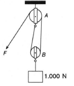 Sebuah katrol ganda yang terdiri atas katrol A dan B akan digunakan untuk mengangkat beban 1.000 N. Hitung keuntungan mekanis katrol!