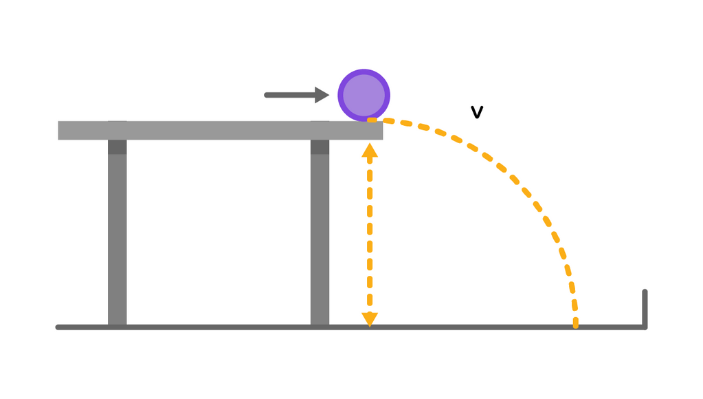 Sebuah kelereng berada di atas sebuah meja didorong dengan laju sebesar 2 m/s. Ketinggian meja dari lantai adalah 45 cm. Tentukanlah jarak mendatar yang ditempuh kelereng dihitung dari kaki meja!