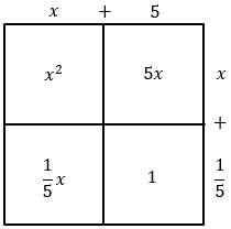 Sebuah kertas berbentuk persegi panjang. Ukuran panjangnya adalah (x + 5) cm dan lebarnya cm. Luas kertas tersebut adalah … .