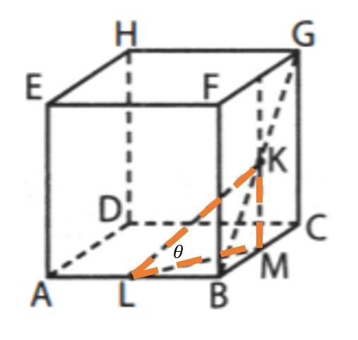 Sebuah kubus ABCD.EFGH dengan rusuk . Titik L adalah titik tengah AB. Titik K adalah titik tengah diagonal sisi BG. Titik M adalah titik tengah BC. Nilai sudut garis KL terhadap bidang ABCD adalah ....