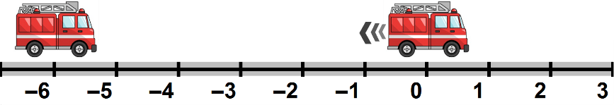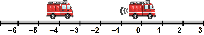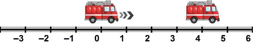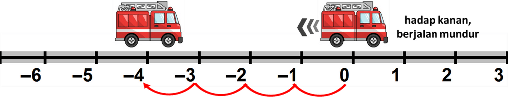 Sebuah mobil pemadam kebakaran berada di titik nol menghadap kanan gambar (->) dan berjalan mundur sejauh 4 langkah.