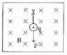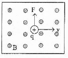 Sebuah muatan q bergerak di dalam medan magnet dengan kecepatan v. B adalah kuat medan magnet dan F adalah gaya magnet yang dialami muatan. Gambar yang tepat adalah ....