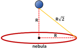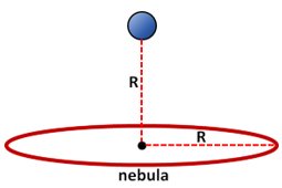 Sebuah nebula berbentuk cincin berjari-jari R dan bermassa total . Sebuah planet tepat berada di jarak R sebesar dari pusat nebula seperti pada gambar.