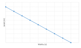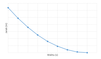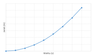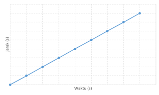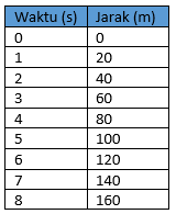 Sebuah objek bergerak dan diamati oleh seorang siswa yang sedang melakukan percobaan. Siswa tersebut mendapat data berupa waktu dengan jarak tempuhnya seperti berikut ini.