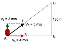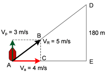 Sebuah perahu menyeberangi sungai yang lebarnya 180 m dan kecepatan air 4 m/s. Jika perahu diarahkan menyilang tegak lurus dengan kecepatan 3 m/s, maka panjang lintasan yang ditempuh perahu hingga sampai ke seberang sungai adalah … .
