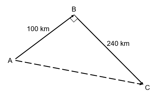 Sebuah pesawat bertolak dari kota A menuju kota B pada arah Timur Laut sejauh , kemudian dari kota B menuju kota C pada arah Tenggara B sejauh .