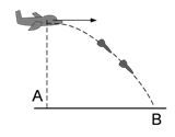 Sebuah pesawat terbang bergerak mendatar dengan kecepatan konstan 300 m/s dan melepaskan bom dari ketinggian h sejajar dengan titik A.