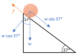 Jika percepatan gravitasi dianggap 10 m/s2, percepatan silinder menuruni bidang adalah ….