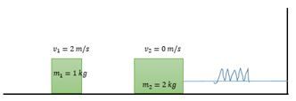 Sebuah balok lain dengan massa 1 kg bergerak dengan kelajuan 2 m/s menumbuk balok dengan massa 2 kg secara elastis. Pada kasus tersebut balok 2 kg tidak menumbuk dinding setelah tumbukan. Kelajuan balok dengan massa 2 kg setelah tumbukan adalah …