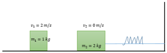 Sebuah balok lain dengan massa 1 kg bergerak dengan kelajuan 2 m/s menumbuk balok dengan massa 2 kg secara elastis. Pada kasus tersebut balok 2 kg tidak menumbuk dinding setelah tumbukan. Jarak maksimum pegas akan tertekan sejauh ….