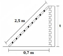 Sebuah tangga panjangnya disandarkan pada tembok. Jika jarak ujung bawah tangga ke tembok , tinggi tangga diukur dari tanah adalah