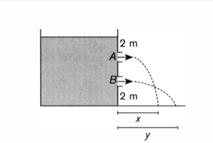 Jika pancaran air dari A mengenai lantai sejauh x dan pancaran air dari B sejauh y, nilai sebesar...
