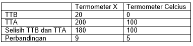 Sebuah termometer X memiliki titik tetap bawah 20°X dan titik tetap atas 200°X. Termometer X akan menunjukkan skala yang sama dengan termometer Celcius pada suhu ….