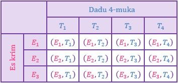 Sebuah toko es krim menjual 3 macam es krim, yaitu es krim cokelat, es krim vanila, dan es krim stroberi. Toko tersebut juga menawarkan 4 macam topping, yaitu meses, gula halus, selai cokelat, dan buah stroberi. Andi ingin membeli es krim di toko tersebut. Banyaknya pilihan es krim yang dapat dibeli oleh Andi adalah ... pilihan.