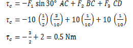 Jika tongkat diputar di titik C, momen gaya total adalah .…