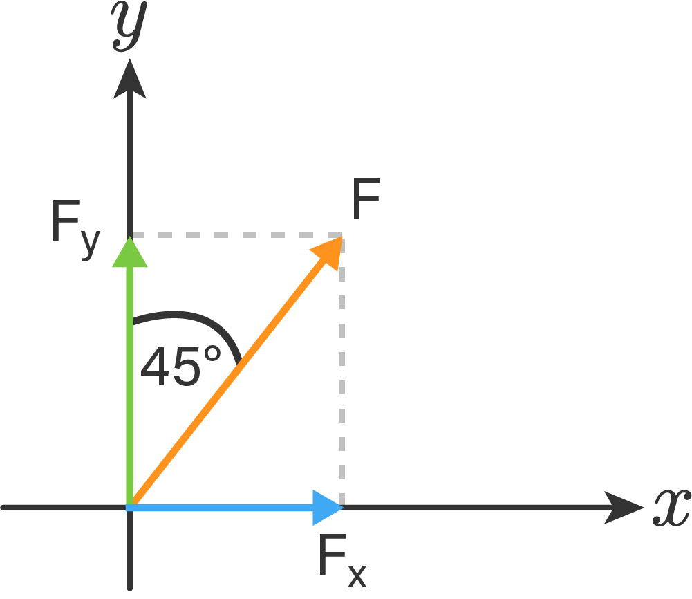 Sebuah vektor F = 90 N membentuk sudut 45° terhadap sumbu Y. Besar vektor proyeksi terhadap sumbu X adalah ....