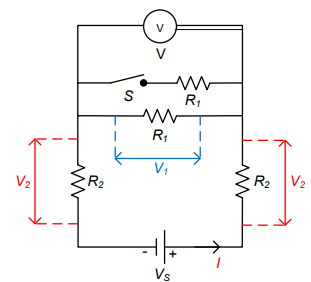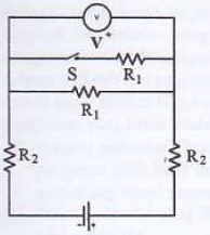 Sebuah voltmeter V dirangkai seperti yang terdapat pada gambar. Jika saklar S ditutup, yang akan terjadi adalah ....